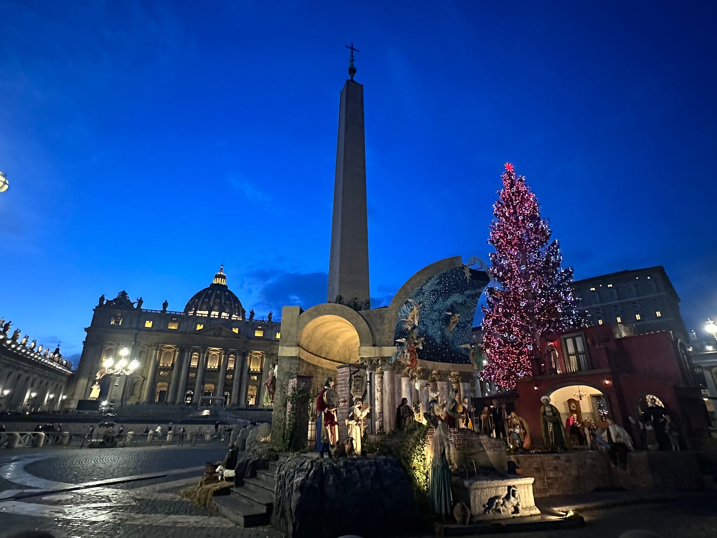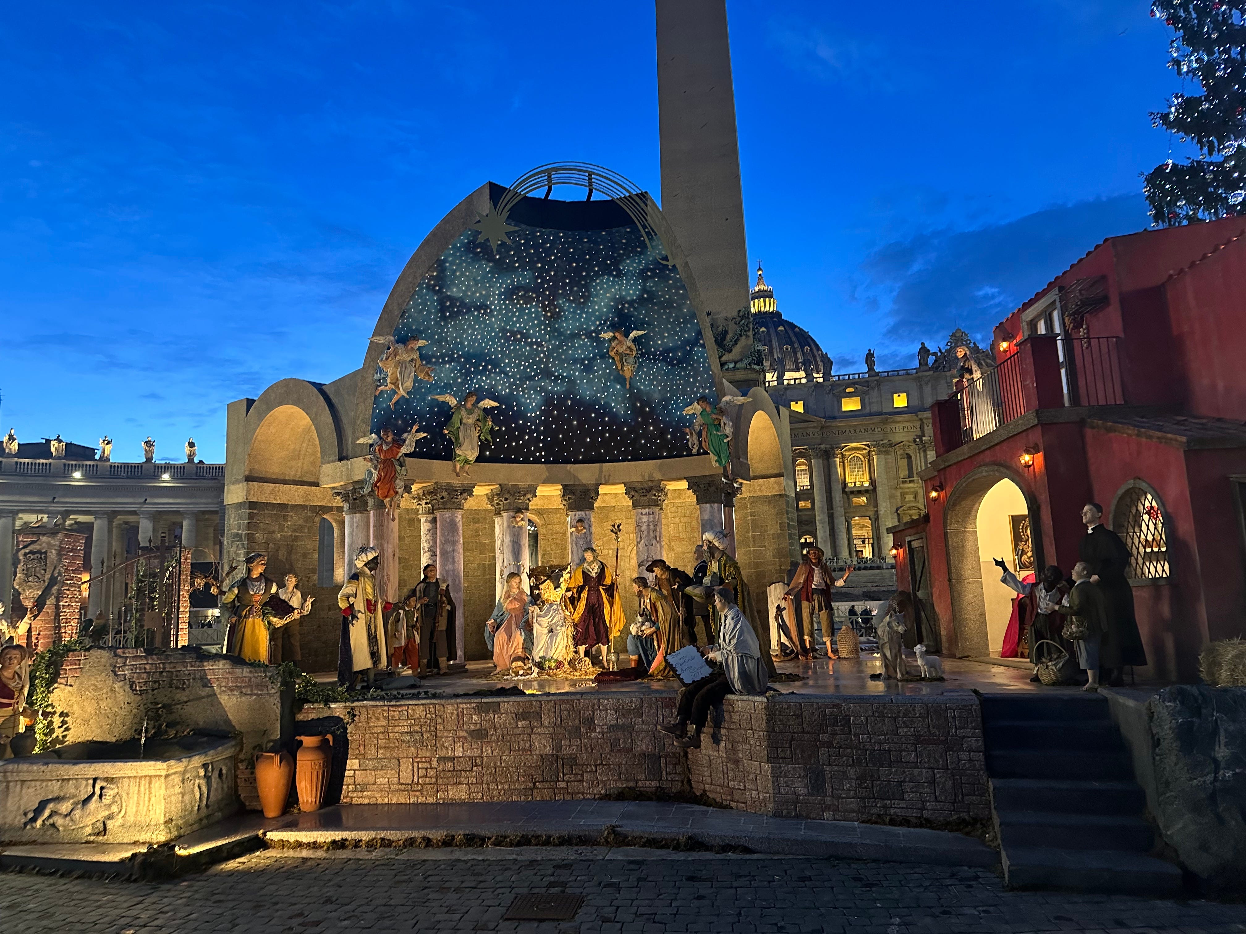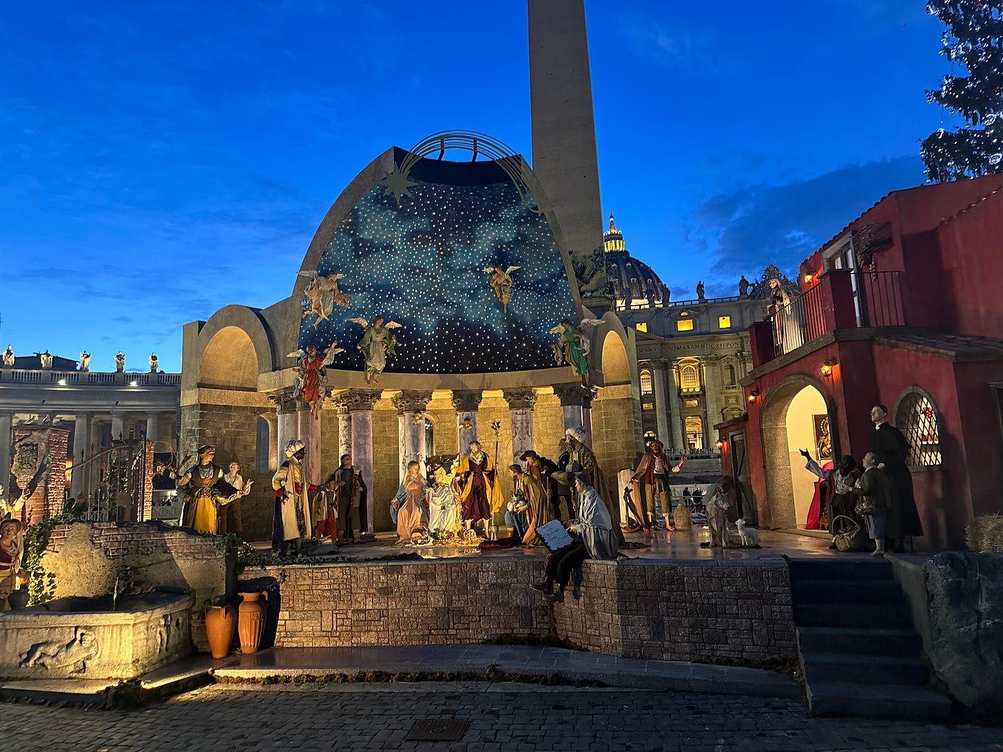 This year’s nativity scene is a traditional Neapolitan scene and is a gift from the Diocese of Nocera Inferiore-Sarno in Campania. The tree comes this year from the other end of Italy, from Bolzano in the South Tyrol.