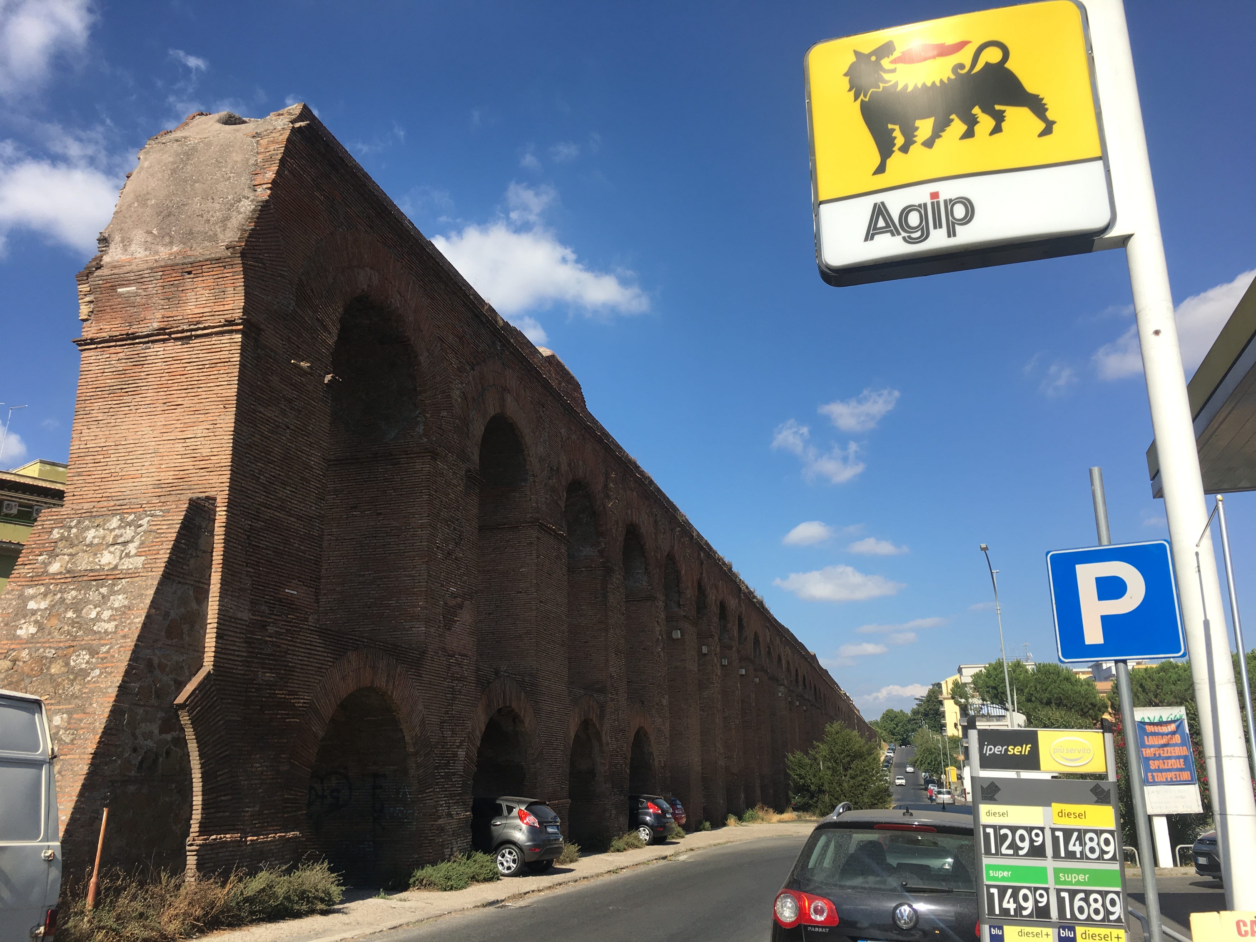 It was completed in 226, five hundred and thirty eight years after Rome’s first successful aqueduct, the Aqua Appia had been laid out during the consulship of Appius Claudius. Rome as they say was indeed not built in a day. Today traces of the aqueduct snake through the eastern suburbs of the city, and the remains of its monumental castellum aquae, a great water tank and grand fountain, sit in the park at Piazza Vittorio Emanuele: the vestiges of Rome’s last great project of hydraulic engineering.
